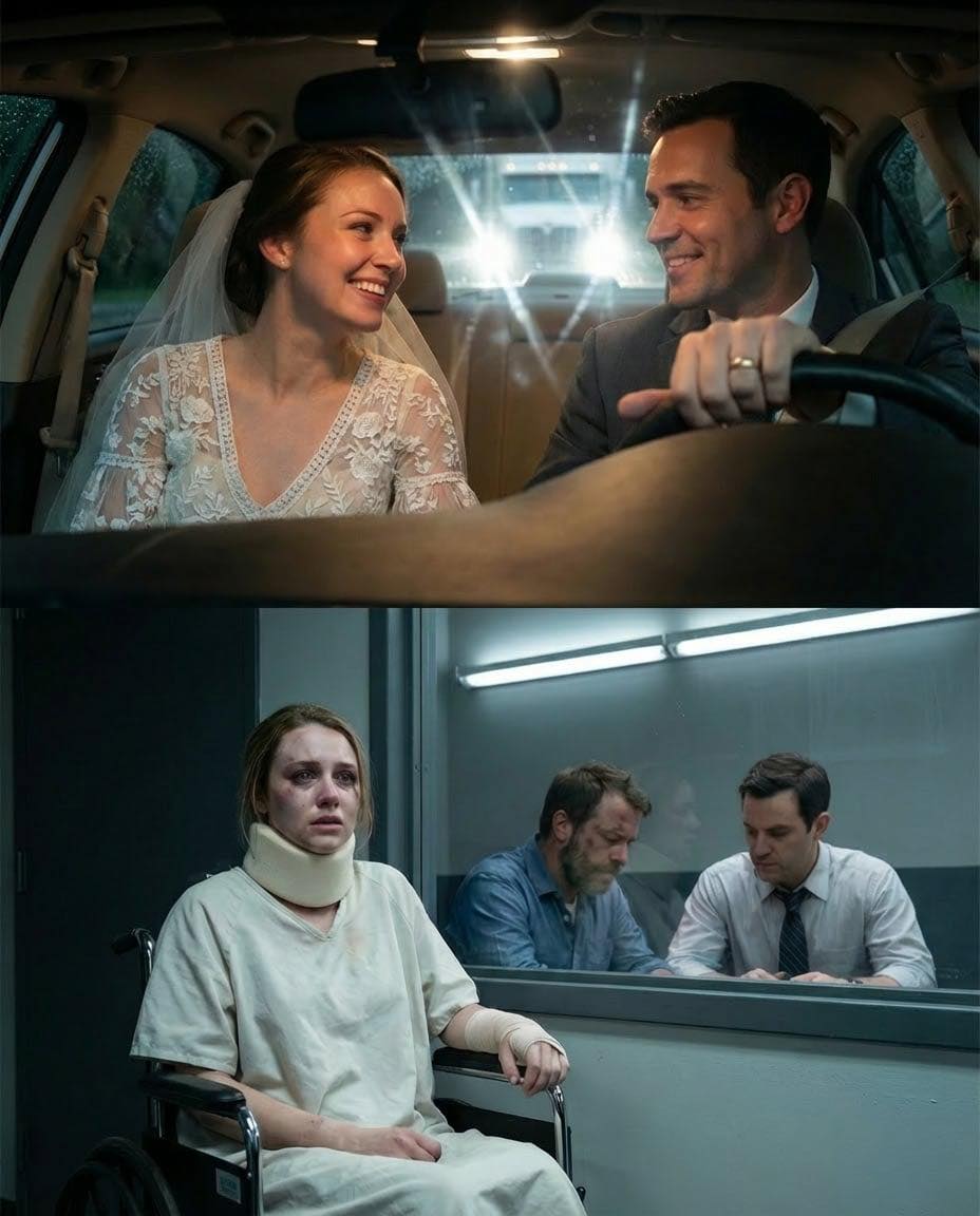 The truck burst through the rain like a beast without brakes. One moment, Daniel was laughing, his wedding band glinting on the steering wheel. The next, glass shattered across my face, metal shrieked, and the world flipped over.